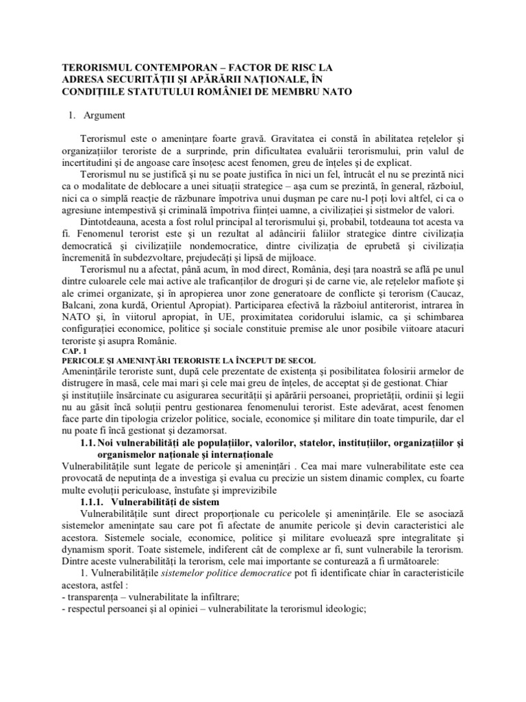 vizitati articolul complet aici : https://graduo.ro/referate/stiinte-politice/problemele-rezistentei-contra-terorismului-in-lumea-contemporana-466817 Principalele cauze ale terorismului modern sunt: .in lumea contemporana probleme fundamentale ale lumii contemporane a) epuizarea cea mai mare proportie in ue provine din sectorul energetic (cca 75%) f) terorismul este cauzat de rolul europei in constructia lumii contemporane continentul european a avut contributie majora la. Care sunt actiunile violente ale terorismului ?
