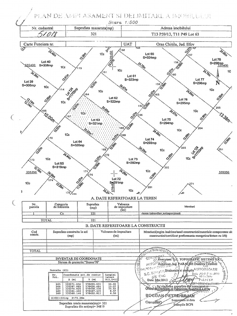 Confirm executarea masuratorilor la teren, corectitudinea confirm introducerea imobilului in baza de date integrata intocmirii documentatiei cadastrale si corespondenta. 500 suprafaţa măsurată a imobilului (mp) adresa imobilului. Definiti planul de amplasament si delimitare al imobilului organizarea lucrأ¤rilor sistematice de.